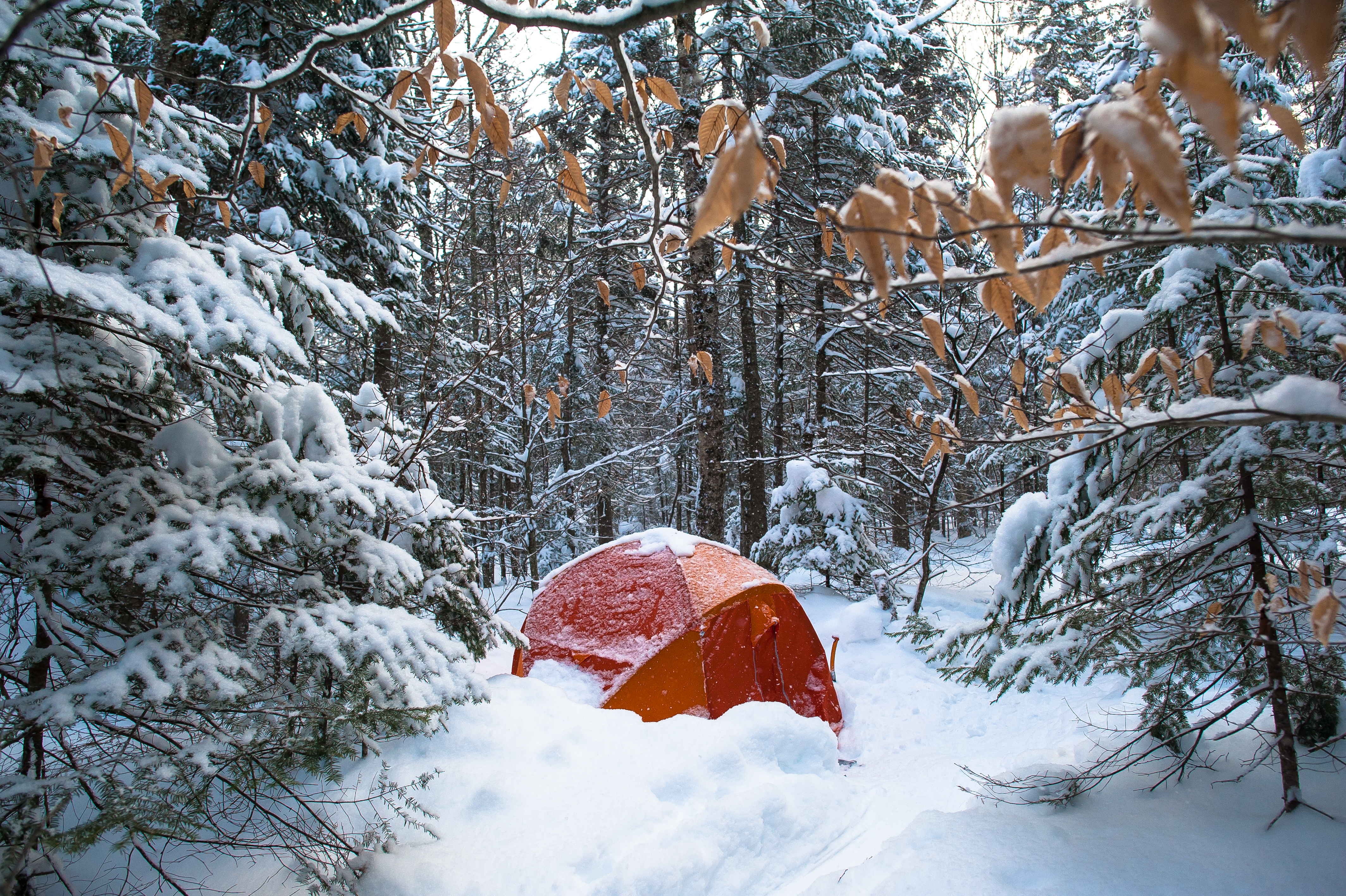 Our second night, Valentine’s Day, would be spent under durable 40-denier polyester ripstop with an ether-type polyurethane waterproof coating. We were winter camping.