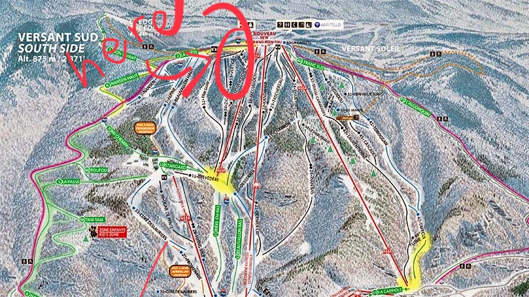 We headed straight for one of the steepest parts of the mountain. A run called “Vertige,” which roughly translates to “fear of heights” or “vertigo.” The run is found on the south west face of the mountain and most people avoid it. Vertige is permanently roped due to the precipitous drop. It is one of the steepest inbounds runs in the East and usually glazed with ice.